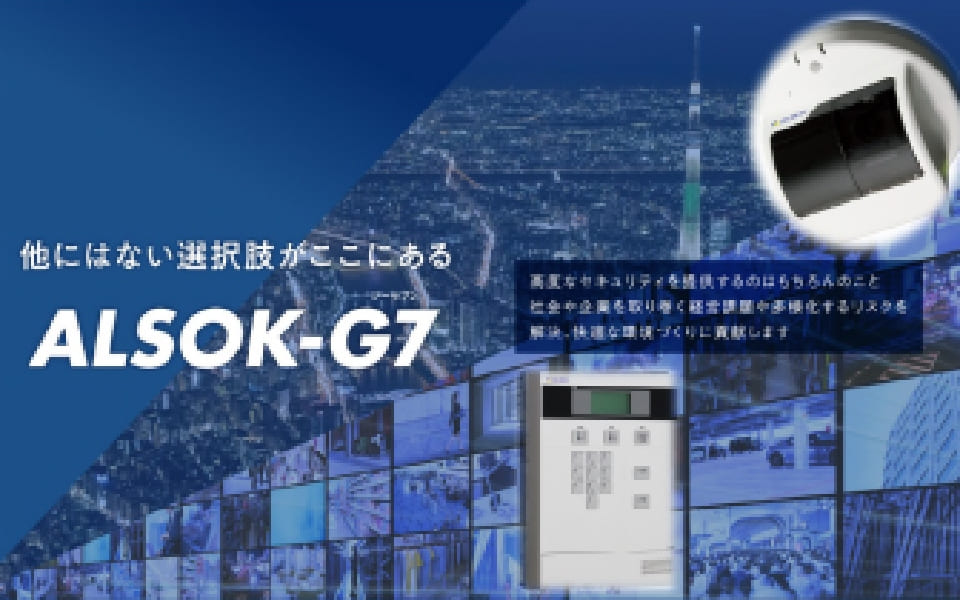 「ALSOK-G7(ジーセブン)」は、先進の画像解析技術を取り入れ、画像監視サービスを標準装備した最新のオンラインセキュリティシステムです。当社がこれまで磨き上げてきた高品質かつ堅実な警備サービスに最先端の映像セキュリティ機能を付加することで、新たな働き方が増加するなか、いつでも、どこからでも現地の様子をお客様のパソコンやスマートフォンで確認することが可能です。また、照明や空調などのON/OFFを、あらかじめ設定したスケジュールに従って制御することも可能で、開店前・出勤前に空調を起動でき、快適な環境作りを実現するなど、セキュリティ以外の機能も充実しています。